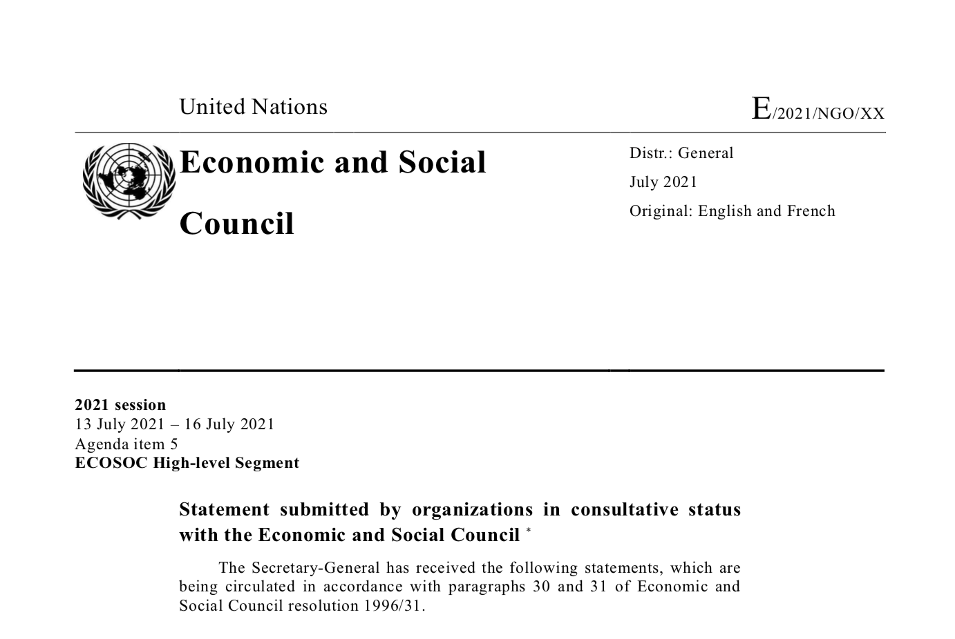 The LGW shared its recommendations in the form of the following statement, submitted to the United Nations, translated into its official languages, available to the international delegations.