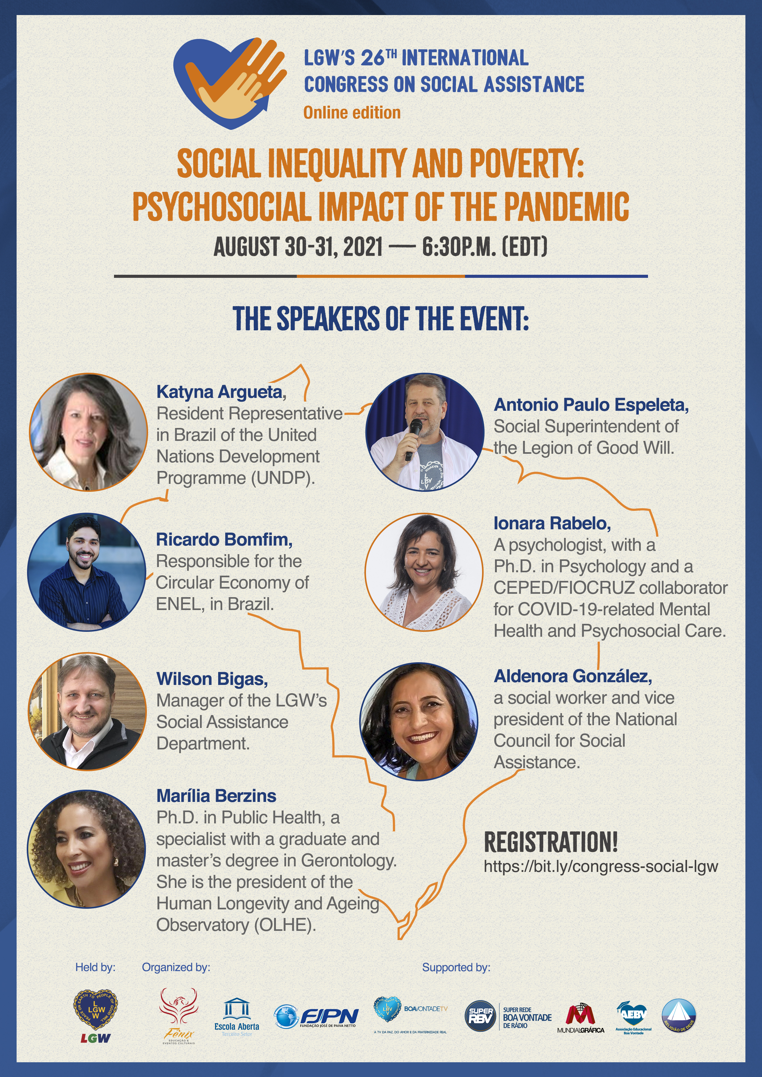 On August 30 and 31, 2021, at 7:30p.m. (BRT), the Legion of Good Will (LGW) will hold the online edition of its 26th International Congress on Social Assistance with the theme “Social inequality and poverty: psychosocial impact of the pandemic.”