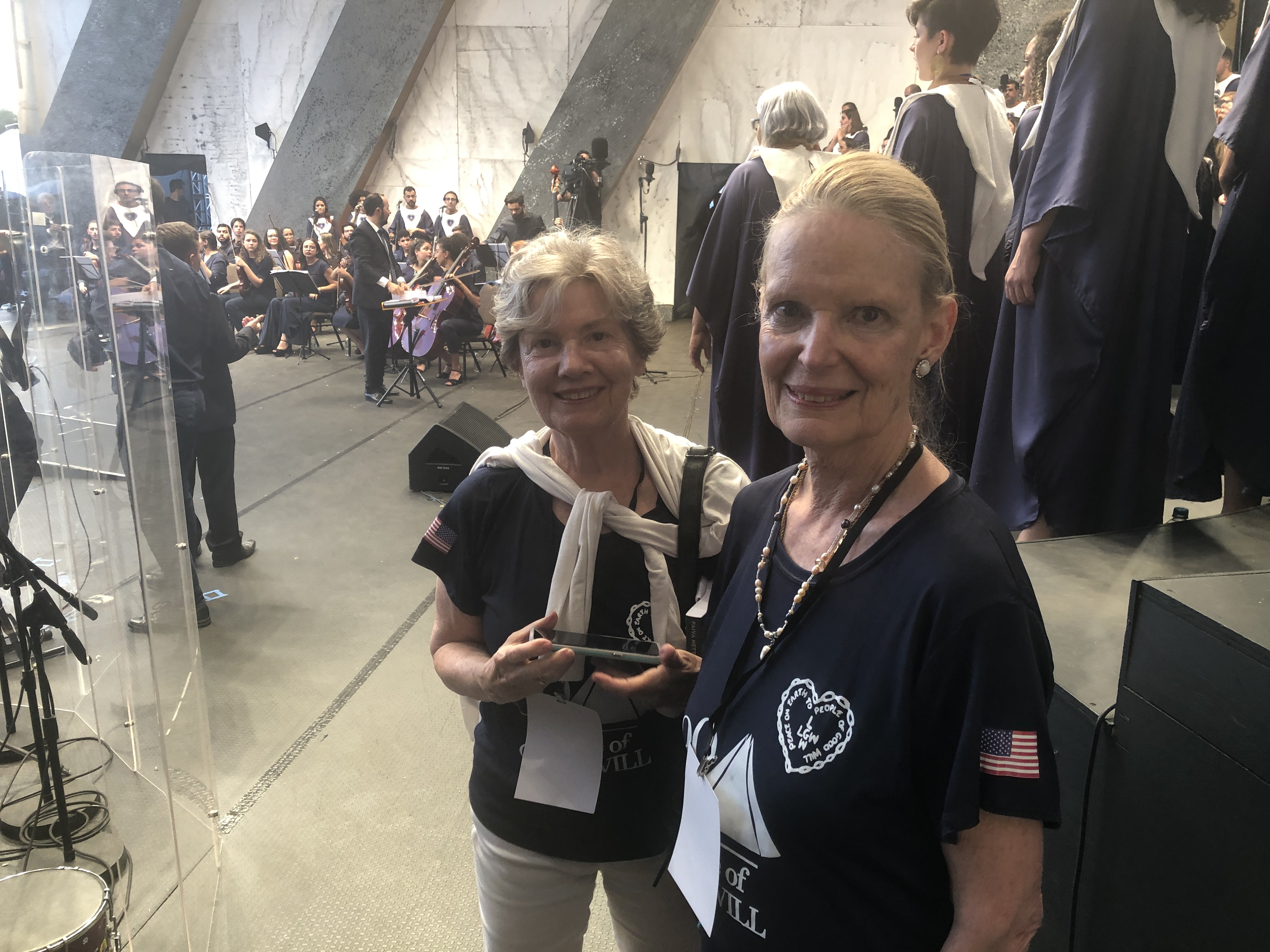 Major events will be held on a stage set in the temple parking lot, also known as Peace Square.